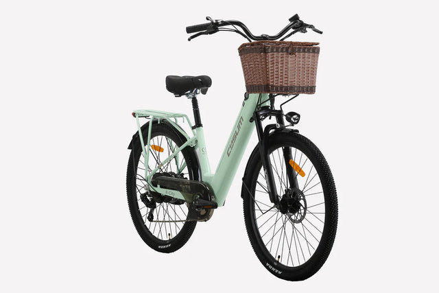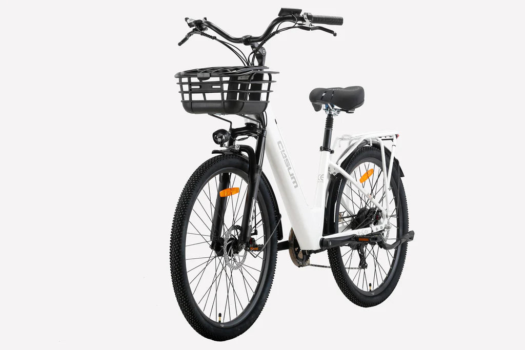 The front basket on the electric bike provides convenient storage, enhances safety by reducing the need to stop frequently, and adds both functionality and style to your ride.