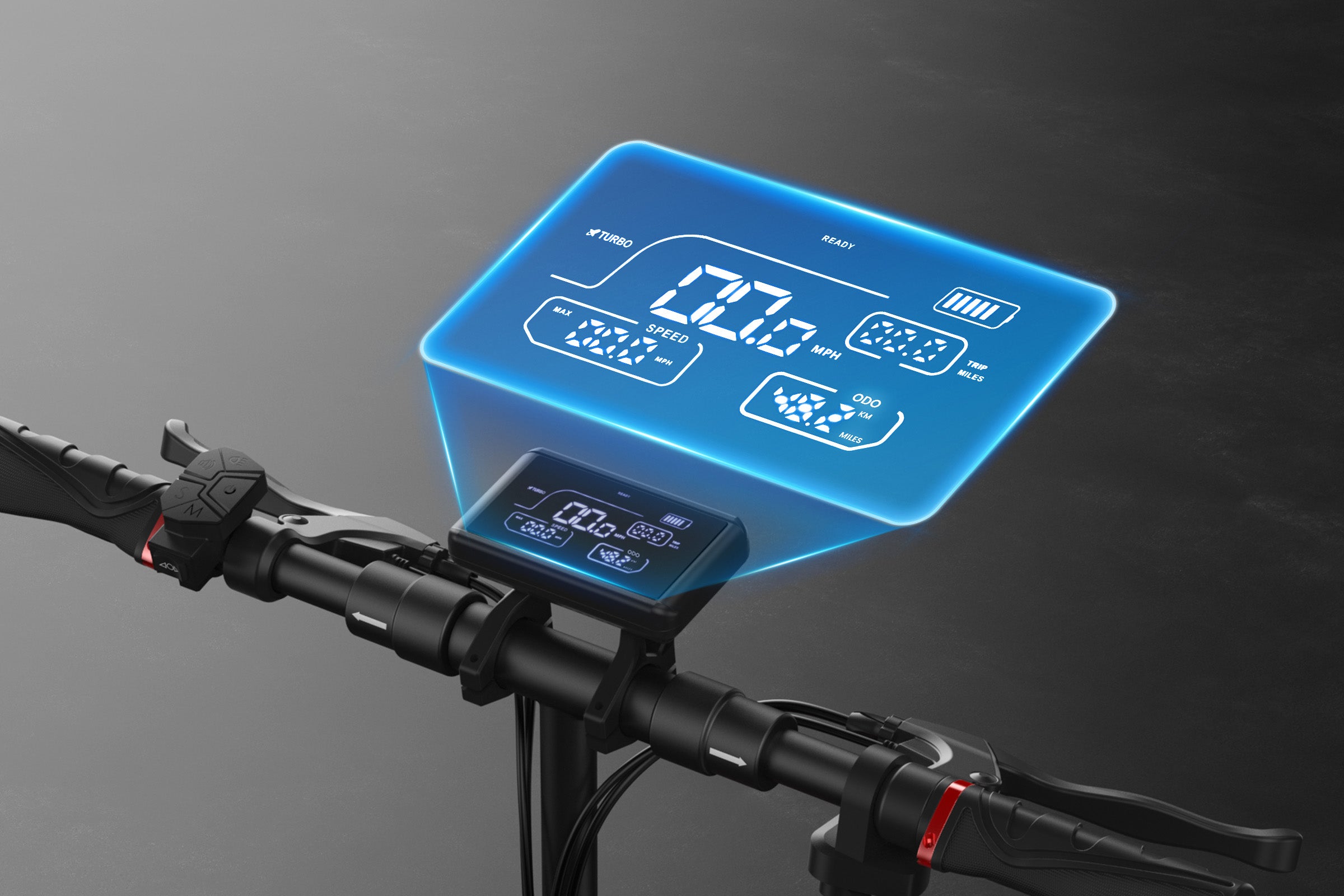 Enhanced night visibility. Displays speed, battery status, headlight, mileage. Built-in fault self-detection via parameter codes.