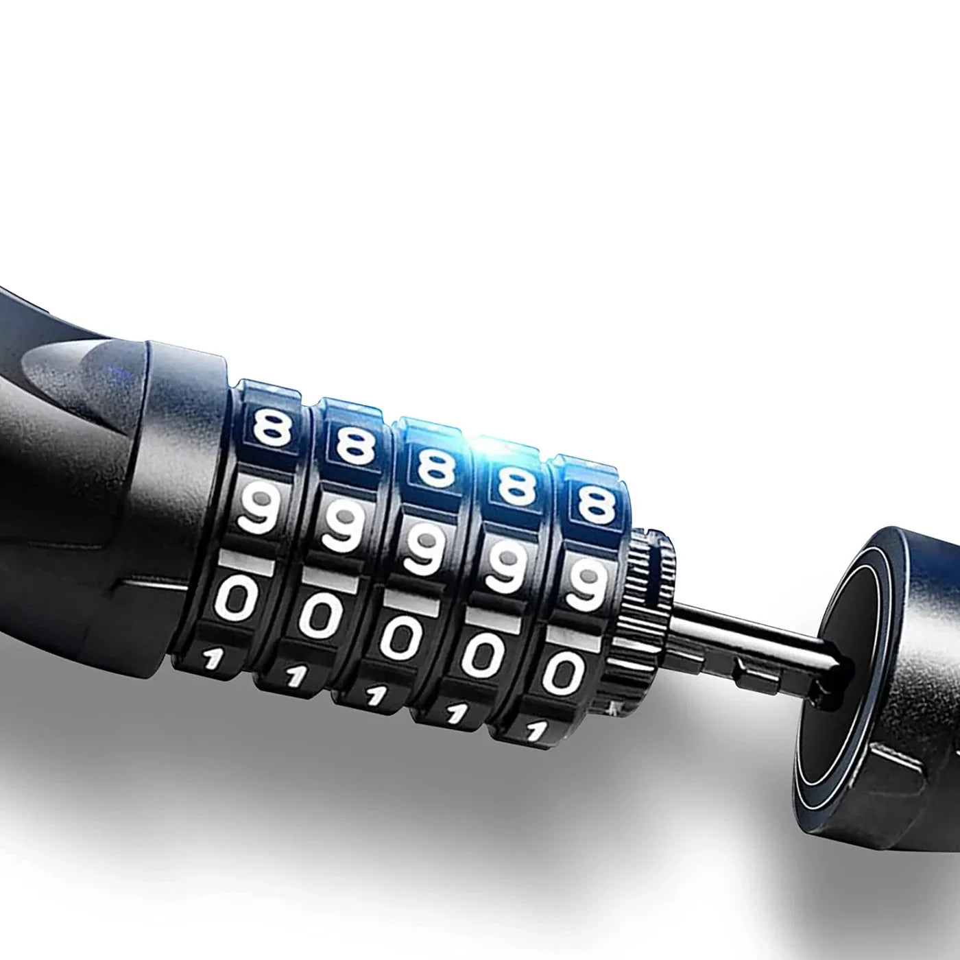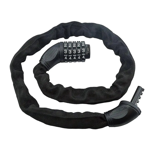 Smart 5-digit resettable combination bike chain lock,this bicycle lock allows up to 100,000 possible codes making it nearly impossible to crack. The default code is 00000.