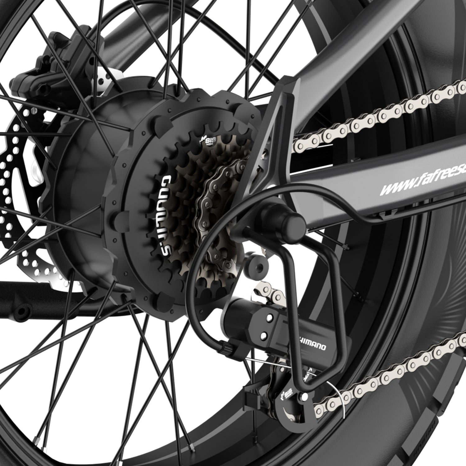 All the features of the F20 Ultra and more! The F20 Ultra Upgrade enhances the original model with a reinforced frame and handlebars, upgraded hydraulic disc brakes for improved stopping power, and an enhanced rear shock absorber with 100mm travel for better comfort. The accessory package is also expanded, now including rearview mirrors, an electronic horn, and essential extras like brake pads and a multi-functional tool. With a powerful 750W motor (1200W peak) and 48V 25Ah LG battery, the F20 Ultra Upgrade offers up to 100km range in electric mode and 120-140km in PAS mode. Its 20×5.0-inch fat tires, hydraulic suspension, and SHIMANO 7-speed gears provide superior comfort and control on all terrains. Whether you're commuting or off-roading, this e-bike is built for performance and durability.