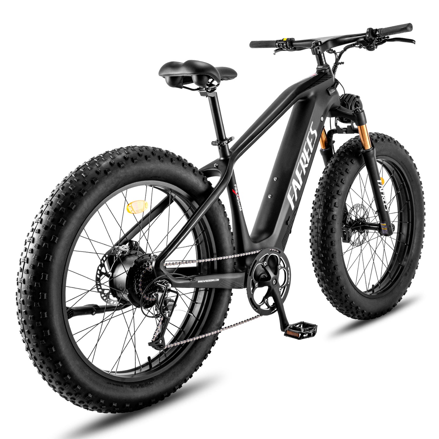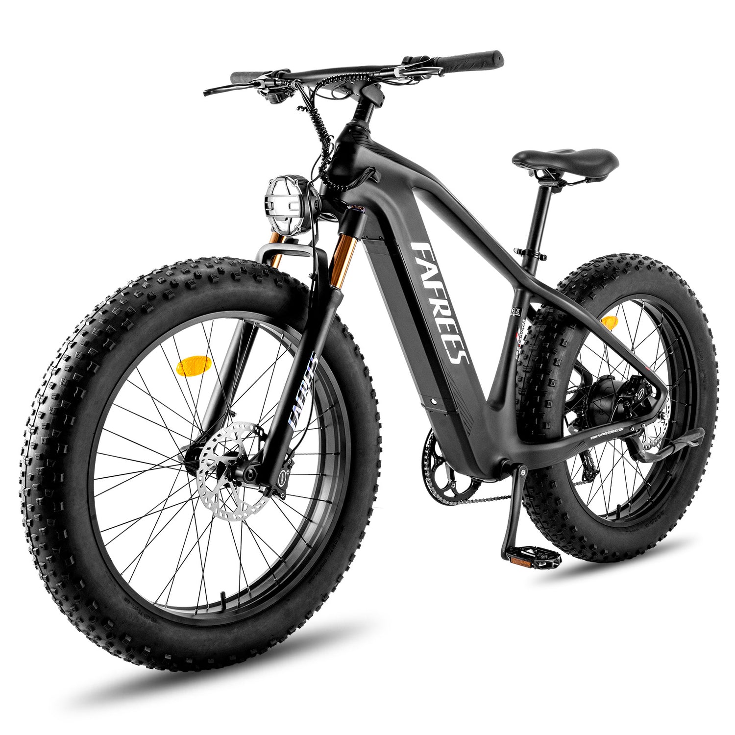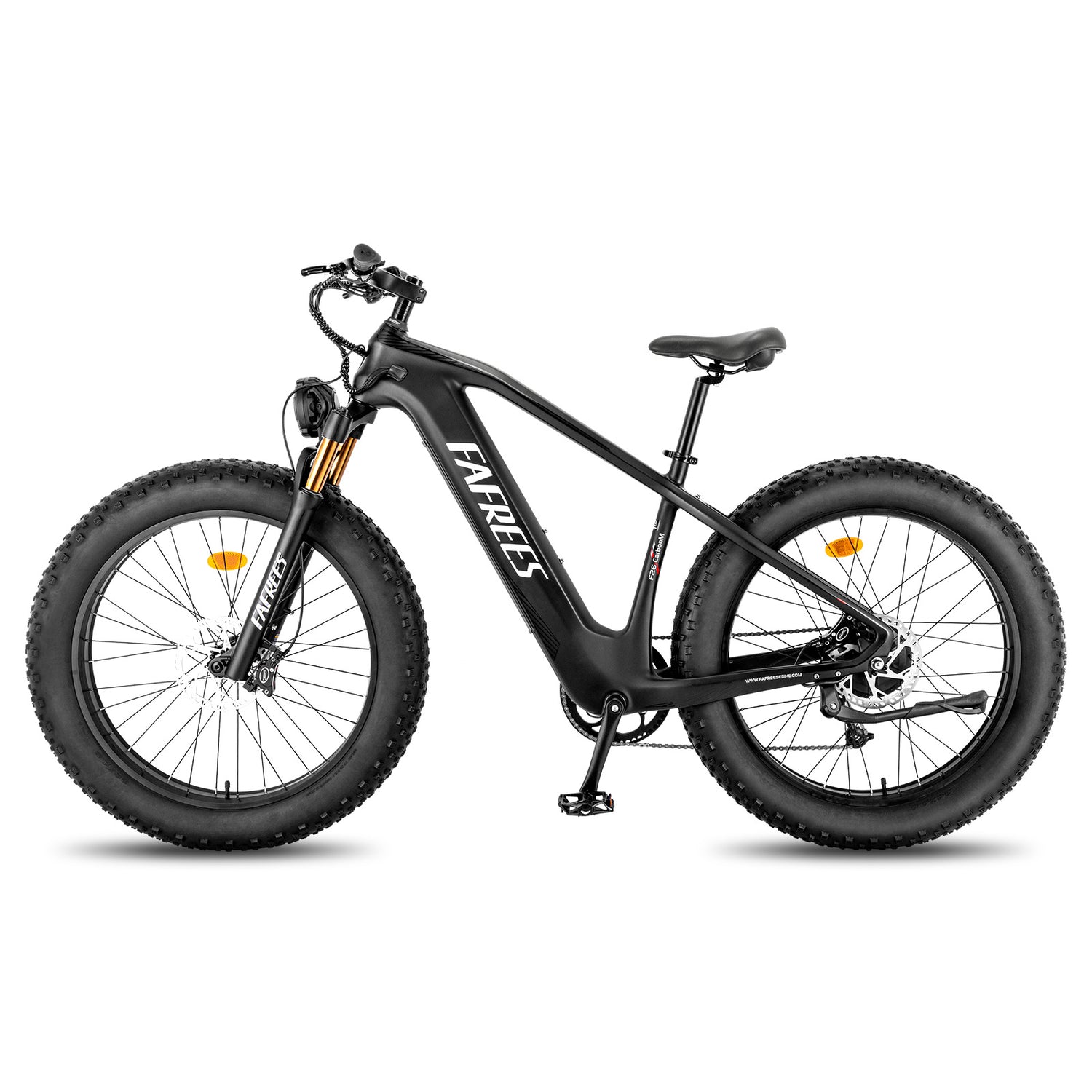 The updated F26 CarbonM bikes feature a 26-inch carbon fiber frame, a 1000W hub motor, and a 9-speed Shimano ALTUS drive-train to deliver gobs of power to climb any hill, yet feel like a light mountain bike when you choose to turn the motor off. Packed with 1200 watts of peak power, the F26 CarbonM is capable of rides of 80 to 100 kilometers on a single charge, while the stem-mounted LCD screen command center allows you to keep an eye on important statistics as you ride. The Samsung battery, which is detachable and charges in 7 hours, blends seamlessly into the bike's frame. The combination of the high-end parts on this bike creates a special product that is intended to deliver the best value and longevity.
